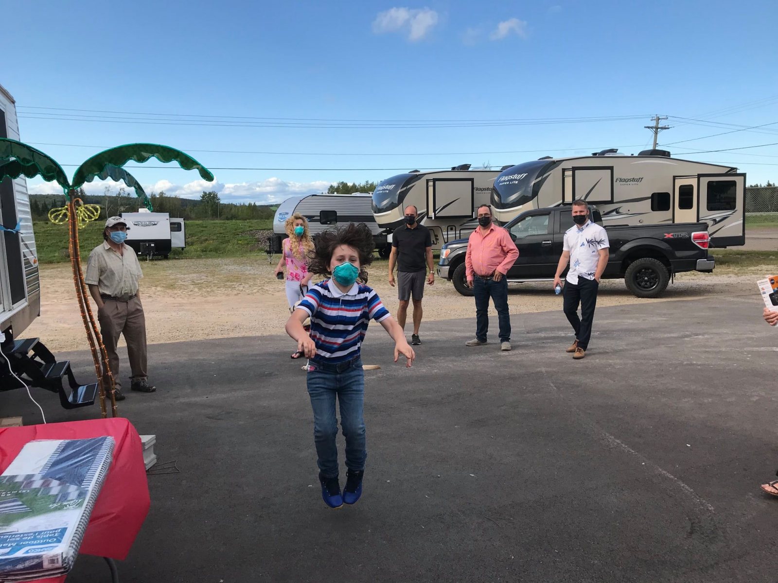 Earlier this month Doug’s Recreation in Sussex hosted a ribbon cutting ceremony for Rivers Wish – A New to Him Travel Trailer. His face exploded with joy when wish-maker Tara invited him to cut the Ribbon.